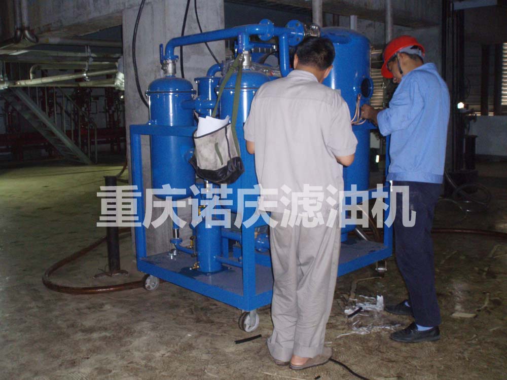 汽輪機油,通常包括蒸汽輪機油、燃氣輪機油,水力汽輪機油及抗氧汽輪機油等,汽輪機油的作用主要是潤滑作用,冷卻作用和調速作用. TYQ汽輪機油真空濾油機主要用于處理不合格的汽輪機油油,特別適用于處理嚴重乳化的汽輪機油,能快速、高效除去油中的水分、氣體、雜質,使油品的各項質量指標達到新油標準,保證汽輪機組安全運行。本機以特殊的高分子材料為介質,集破乳化,脫水,除雜為一體,結合真空分離技術可在線破乳、脫水、除酸、除雜,使嚴重渾濁乳化的透平油變得清澈透明。是在線處理透平油,低黏度潤滑油和液壓油的理想設備。