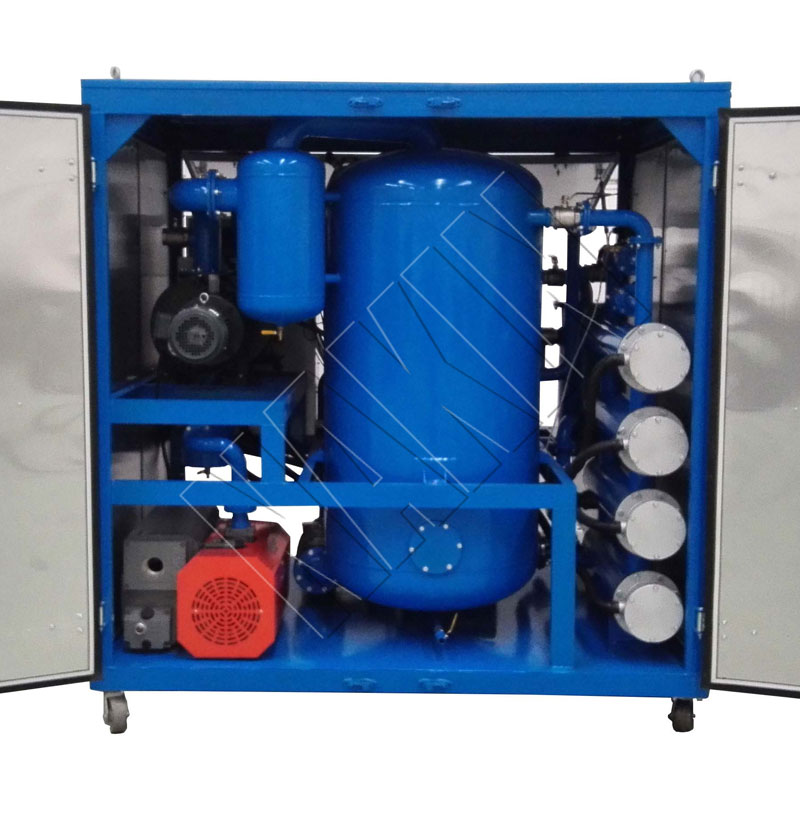 ZYD系列雙級真空變壓器油濾油機(jī)能快速,深度有效脫除變壓器油中的水分、氣體和雜質(zhì)等油液中的有害成份,提高油的絕緣性能,濾后的油能有效保證電力設(shè)備安全正常運(yùn)行。ZYD雙級真空濾油機(jī)廣泛應(yīng)用于供電、發(fā)電、輸變電、電力設(shè)備制造、電力工程、電氣設(shè)備維護(hù)、電力試驗(yàn)、電氣科研等行業(yè)客戶的油品凈化處理。特別適合于對高等級變壓器油,超高變壓器油的深度處理,可應(yīng)用于110KV/220KV/500KV以上變電站現(xiàn)場帶電濾油作業(yè)。本機(jī)具有真空干燥,真空注油,熱油循環(huán)等功能,同時也可作為單獨(dú)真空抽氣機(jī)組使用,對變壓器和電力設(shè)備進(jìn)行抽真空處理。