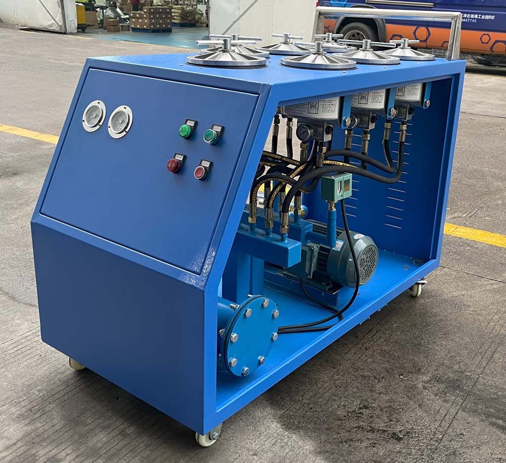采用精密濾油器做為主過濾單元,可以同時(shí)配置1微米精濾芯,齒輪油泵作為油液輸送單元,系統(tǒng)配置壓力報(bào)警,濾芯堵塞報(bào)警,電機(jī)過載保護(hù)等功能,集成組合為一個(gè)便攜式廂式過濾機(jī),確保系統(tǒng)過濾油品清潔度達(dá)到NAS4-NAS6清潔度??梢愿鶕?jù)客戶要求,可以配置一到十個(gè)的過濾單元組合,每個(gè)單元過濾流量在2~3升每分鐘。本機(jī)系列專門為中至大型的油壓機(jī)械而設(shè)計(jì)(油箱容量2000-10000公升)。過濾過程簡單、有效和經(jīng)濟(jì),使用方便.